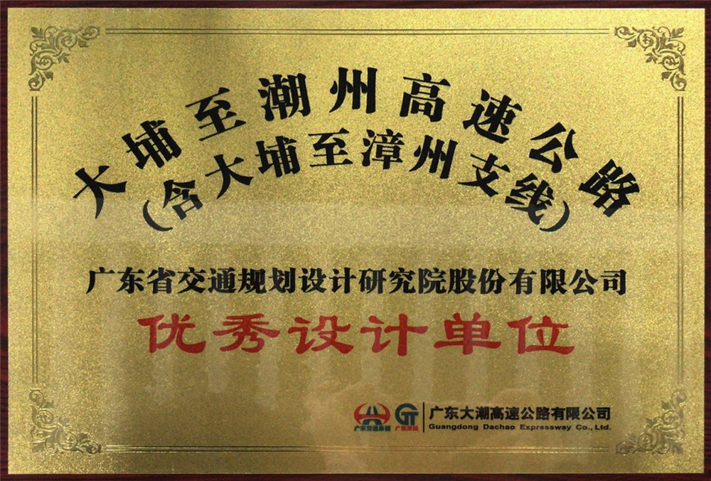 近日,我公司因在大埔至潮州高速公路(含大埔至漳州支线)项目勘察设计与后续服务工作中表现优异、贡献突出,受到大潮高速公路业主单位表彰,并被授予“优秀设计单位”荣誉称号。