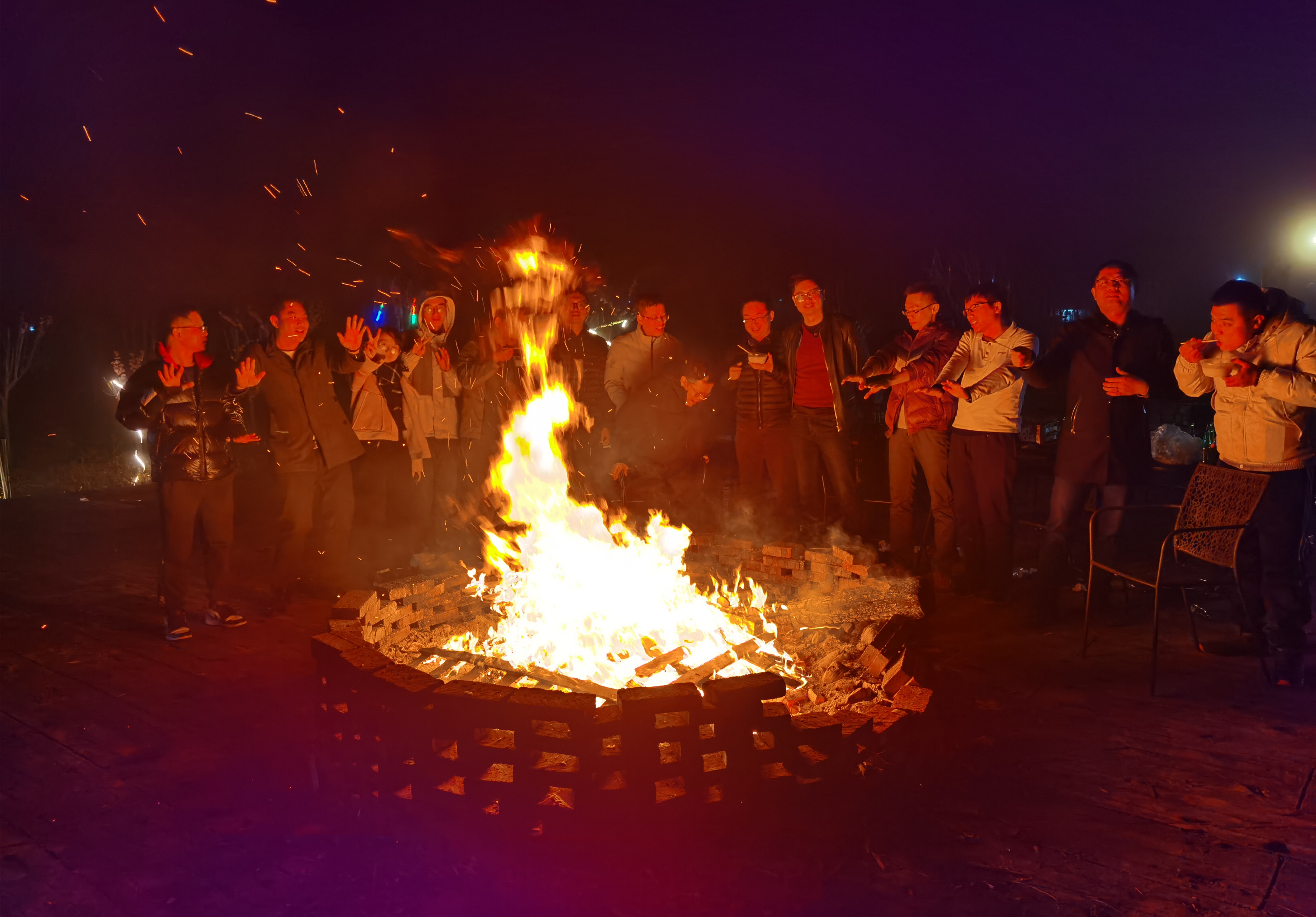 座谈会结束后,支部一行前往丰顺八乡山滩良村开展红色教育活动。该村于1930年5月份召开了东江第一次工农兵代表大会,成立了东江苏维埃政府和红十一军,是东江革命根据地。行车盘旋在山路上,大家看着重峦叠嶂,回想当年革命先驱怀揣着民族解放必胜信念在这里斗争,穿过崎岖,迈过坎坷,无畏牺牲,保存了革命火种,并最终走向胜利,令人动容景仰。沿途,大家主动要求步行前往目的地,并爬至鸿图隧道上方制高点——鸿图亭。该处海拔1300m,是隧道埋深最大的位置。在山顶展望,可以看到大丰华高速优美舒缓的路线和隧道洞口。大家触景生情,不由得对隧道区域的工程地质展开了讨论。晚上,山顶的温度降至5℃,寒风刺骨。在当地居民的指引下,大家燃起了篝火。围着篝火、吃着点心,大家无拘无束地畅谈天地,温暖了身体,激荡了情怀。