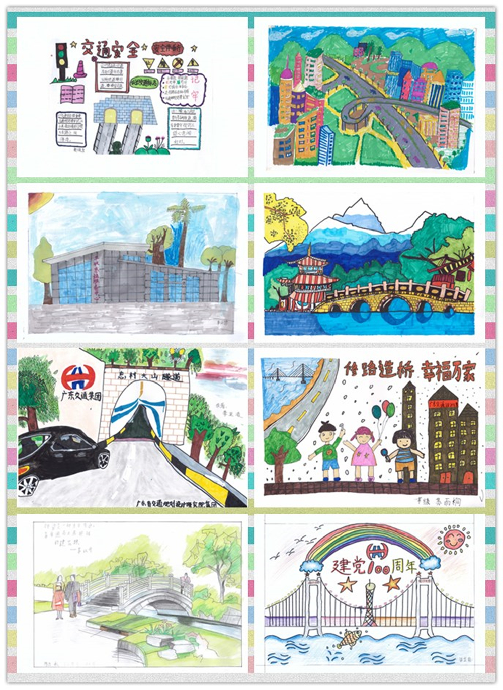 自从征集活动通知下发后,职工与孩子们积极响应本次征集活动。从购买工具纸张、构思起笔到涂色修改,父母与孩子全程配合,共同完成了一张张精彩的作品。国画、水粉画、蜡笔画,每幅作品都是笔笔走心:5岁孩子稚嫩的画笔描绘《南沙大桥的天空》、《一路筑梦》,栩栩如生的《凤凰三桥》、《东华大桥》、《腾飞的高速》、《广梧高速息村大山隧道》里有路和桥的连接、《通往幸福的桥》、《初升的太阳》、《空中交通》满怀孩子们对幸福的期盼和对未来的畅想……