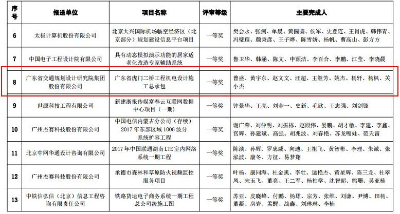 近日,我公司承担的“广东省南沙大桥(原称虎门二桥)工程机电设计施工总承包”项目荣获工业和信息化部工程建设管理中心“2021年度电子行业优秀工程设计项目”电子系统工程类一等奖。这是公司首次获得电子行业设计奖项,标志着我公司的智慧化设计能力在电子系统工程领域获得了外部肯定和认可。