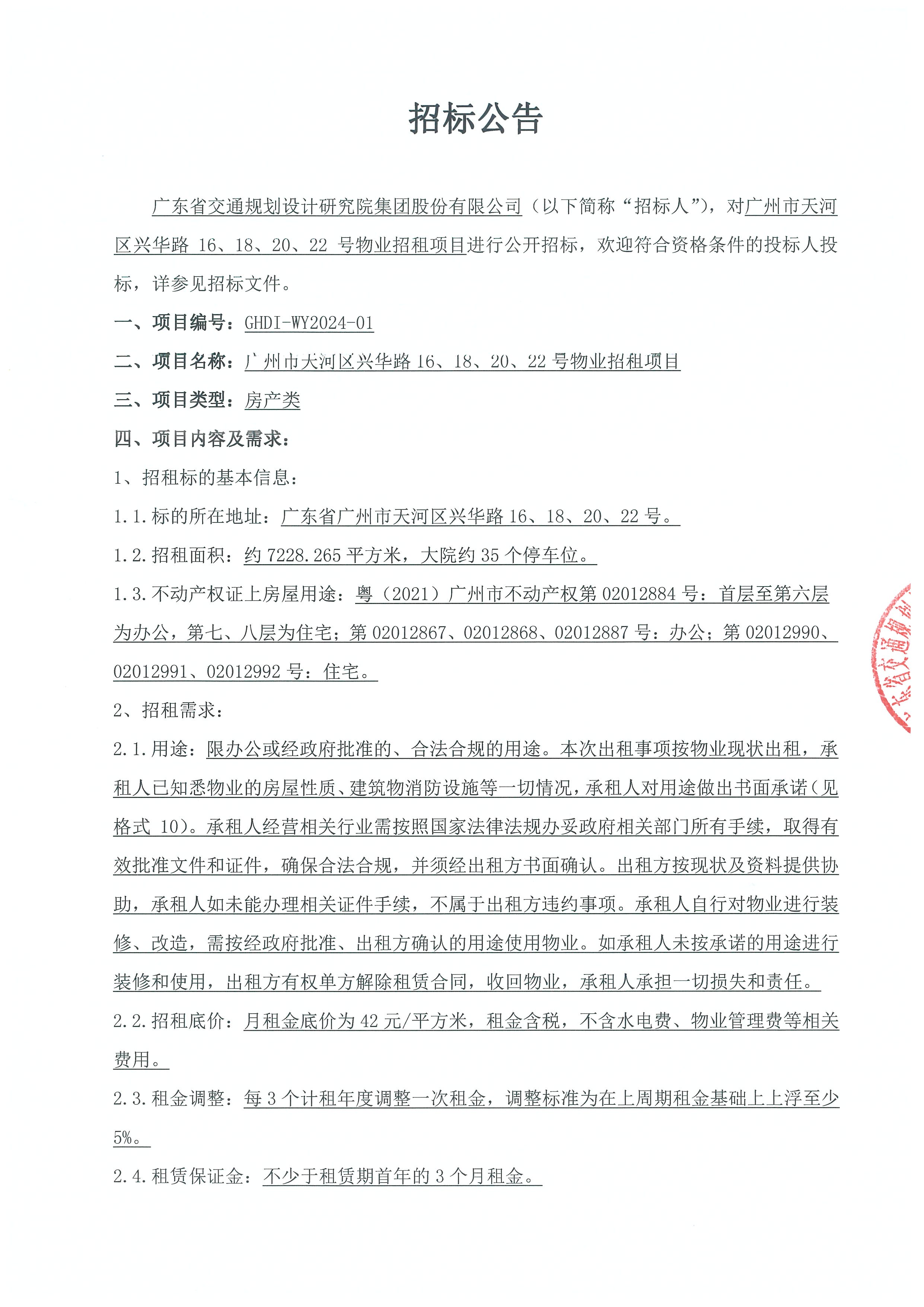 广州市天河区兴华路16、18、20、22号物业招租项目招标公告
