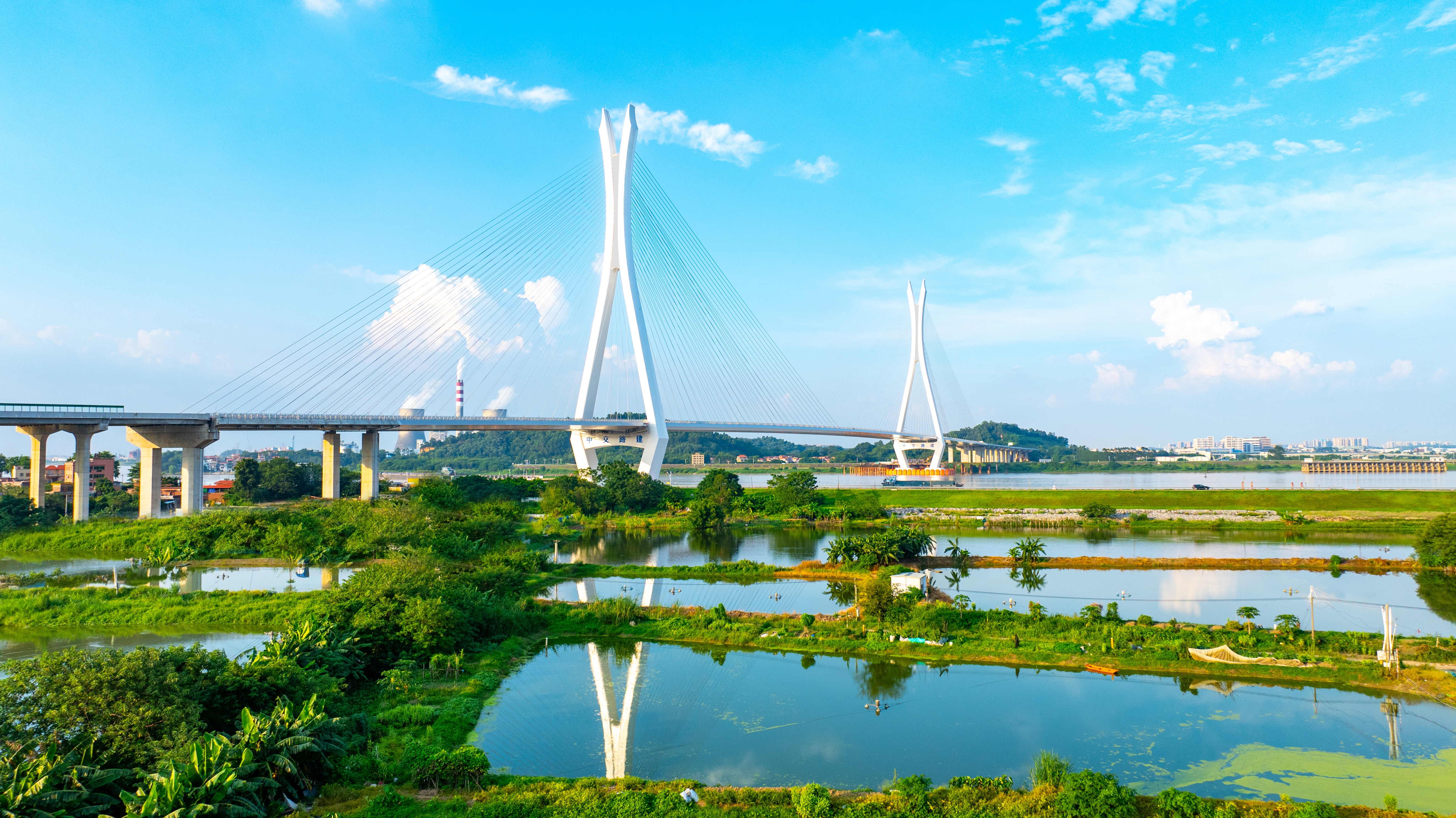 在景观创作方面,公司团队深入挖掘佛山的文化性与地域性遗产,经多轮创意构思和研究推敲,凝练出独创性的白鹭塔方案,以优雅对唱的白鹭形象勾勒出桥塔流畅柔和的外形,修长的双肢塔柱,以遒劲有力的天然曲线冲上云霄,恰似两只天成的白鹭引吭高歌,俯仰于天地之间,它飞越西江,跨越时空,温情地讲述着岭南人对浪漫与祥和及幸福宜居生活的赞美。