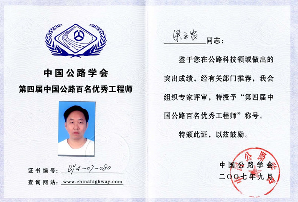 我院梁立农总工程师荣获“第四届中国公路百名优秀工程师”称号