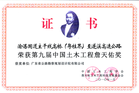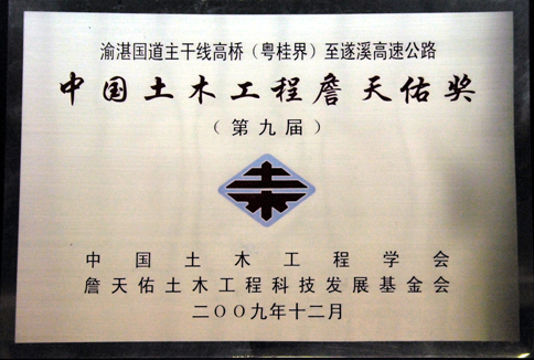 项目荣获“第九届中国土木工程詹天佑奖”