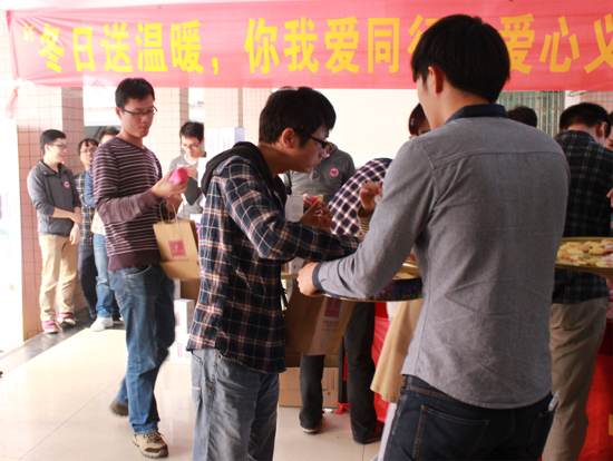 2014年11月17日中午,行政事务部携手第一党支部在2号楼一楼大堂组织开展“冬日送温暖,你我爱同行”主题义卖助学活动,取得圆满成功。活动得到了公司领导和广大热心员工的积极响应,100个“膳魔师”牌保温杯全部售罄,共筹集善款13516元(含第一党支部捐助的5500元成本费用)。全部善款将兑换实物捐助给粤北山区韶关乐昌市坪石镇新岩下村的贫困儿童。