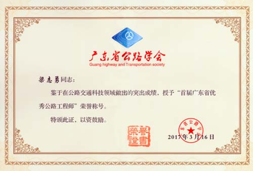 “广东省优秀公路工程师”的评比活动,每两年评选一次,旨在激励和表彰省内广大公路交通工作者积极投身建设创新型国家的伟大事业,践行绿色交通理念,促进公路交通科学技术的繁荣和发展,促进公路交通科技人才的成长和科技创新。陈潮锐、梁志勇副总工程师的当选,既是对他们在公路交通科技领域所做贡献的充分肯定,也是省公路学会对广大公路科技人才的重视、关心和爱护的具体体现。
