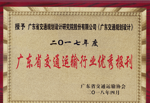 公司报刊《广东交通规划设计》荣获2017年度广东省交通运输行业优秀报刊