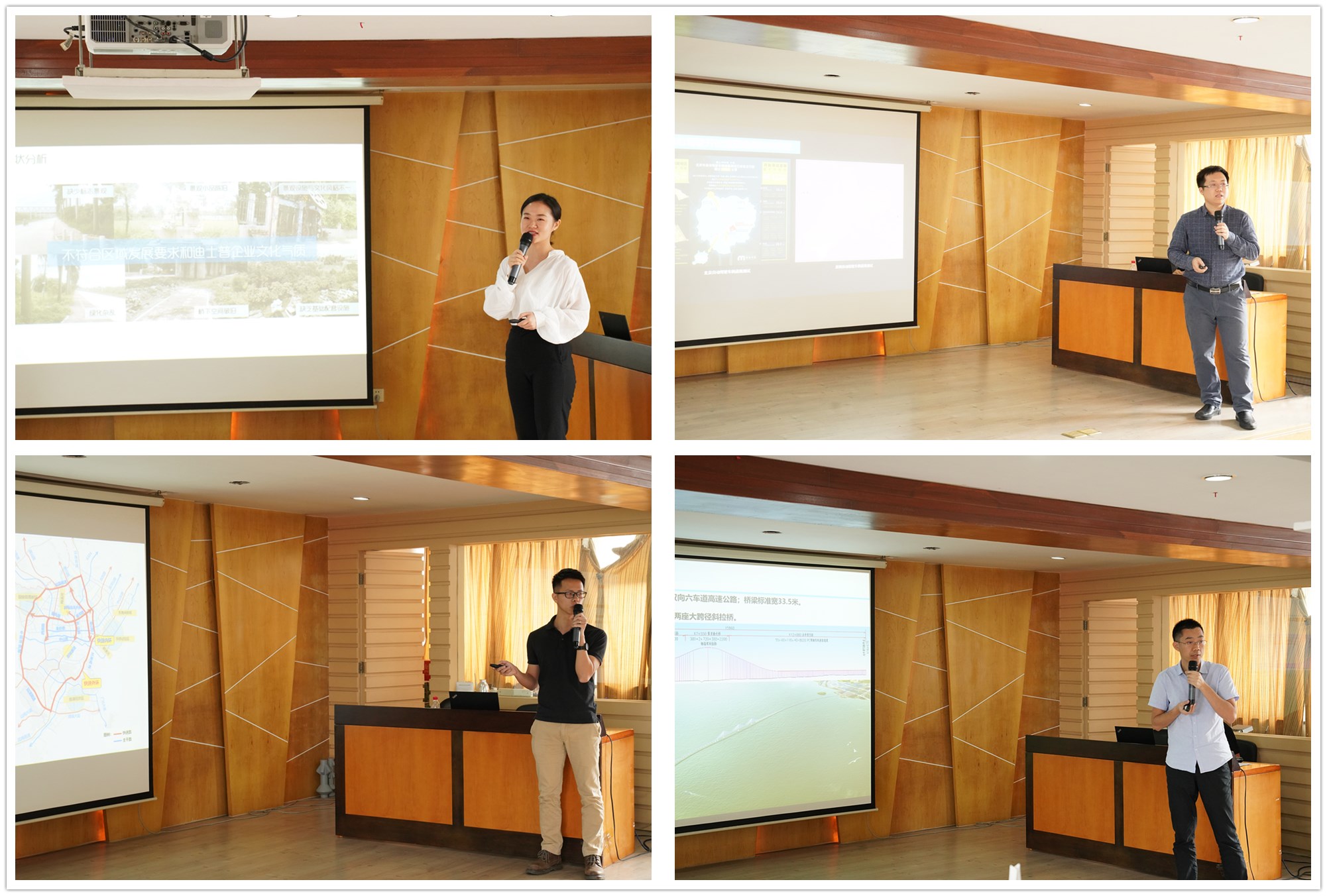 在决赛中,10位选手模拟面向业主单位进行项目汇报,内容涵盖了公路、桥梁、立交、隧道、交通工程、市政道桥、给排水、风景园林等多项业务。各位选手汇报过程条理清晰、重点突出,为评委和观众呈现出了一个个精心设计的方案;汇报风格或严谨沉稳,或活泼生动,展示出了不同的思维方式与历练经验,都具有相当鲜明的个人特色。在每位选手汇报结束后,评委组从“汇报内容逻辑结构是否清晰”、“PPT制作是否美观”以及“选手个人现场表现是否大方得体”这三方面进行打分。
